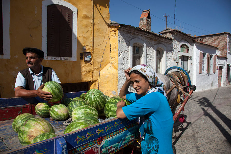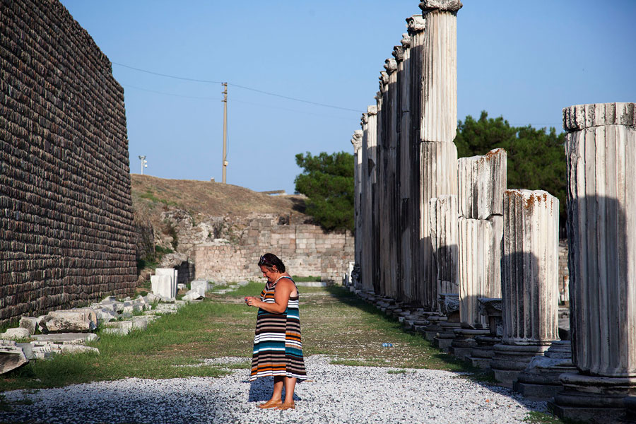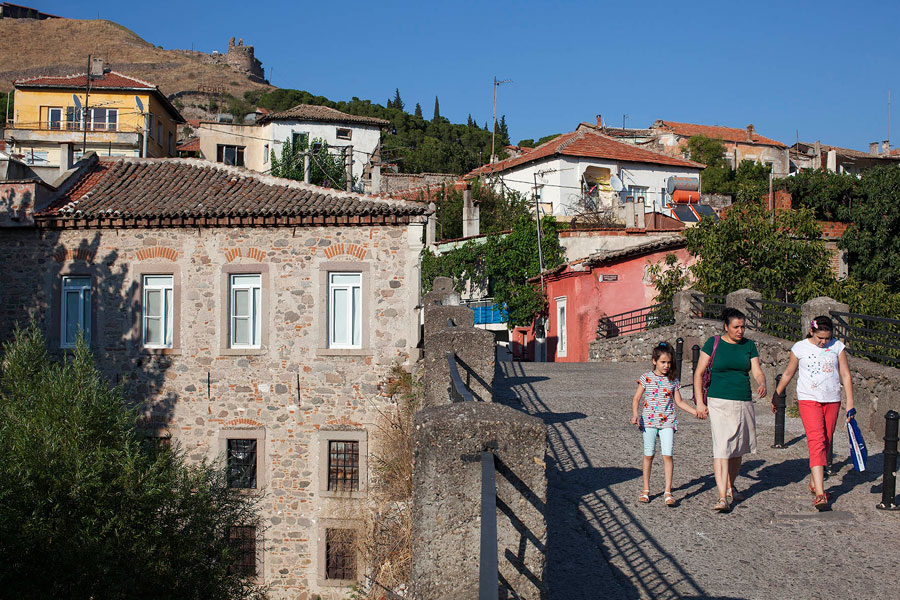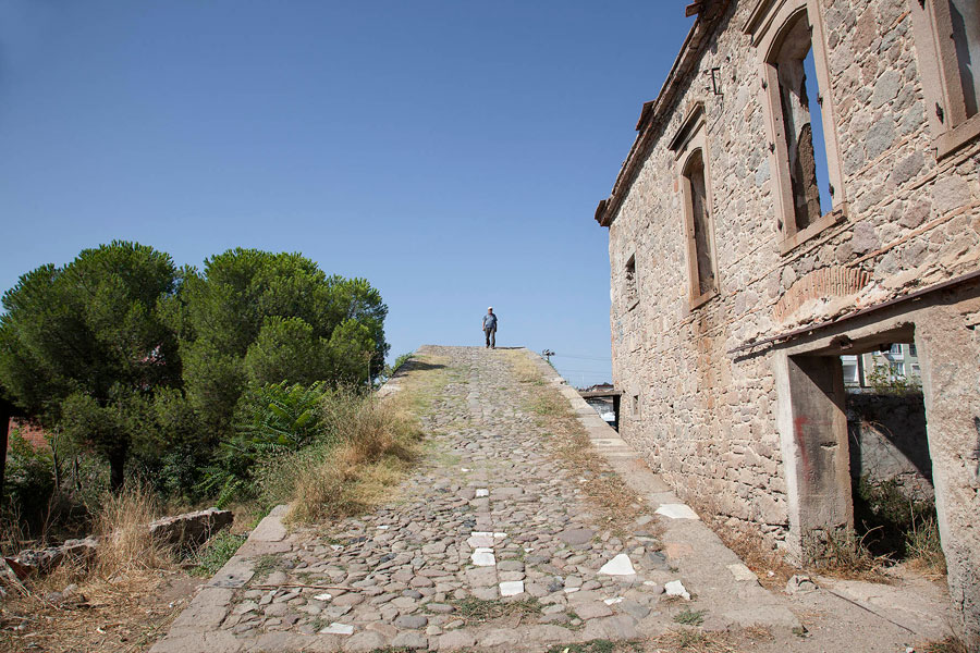 Sabahın erken saatinde uyanıp gün aydınlığında tekrar ilçeyi keşfe çıkmıştım. Eski bir Rum evi olan pansiyonumun bulunduğu Barbaros Mahallesi tepeden inen yamaçların son bulduğu yerde başlıyordu. Yamaçların düzlüğe dönüştüğü yerde doğudan gelen Selinos Çayı kıvrılarak Bakırçay Ovası’na doğru ilerliyordu. Selinos Çayı’nın üstünde tepeye doğru yükselen yamaçlarda halk arasında Kale Mahallesi diye anılan yerleşim yeri bulunuyordu. Mahallenin yolları çay üzerinde yer alan Selinos köprüleri ile merkeze bağlanıyordu. Helenistik yapıda olan köprülerden geçiyor çayı takip ediyordum. İlçe merkezinden uzaklaştığım hissine kapıldığım anda kendimi Kınık Garajı’nda buluvermiştim. Az önceki sessizlik araba sesleri ve simsarların bağırışlarıyla yer değiştirmişti. Garajın hemen yanında yer alan Kızıl Avlu’nun kırmızı tuğladan yapılma yüksek duvarlarıyla da karşılaşınca şaşkınlığım daha bir artmıştı. Selinos Çayı, Kızıl Avlu diye bilinen bazilikanın yanındaki iki antik tünelin içinden tekrar görünmüştü. Halkın “ne yerde ne gökte” diye tanımladığı mahallede olduğumu anlamıştım. Çay bazilikaya yakın bir yerde bu iki antik tünele girip kayboluyor tünellerin son bulduğu yerden bakınca da evler ne yerde ne de gökte gibi görünüyordu.