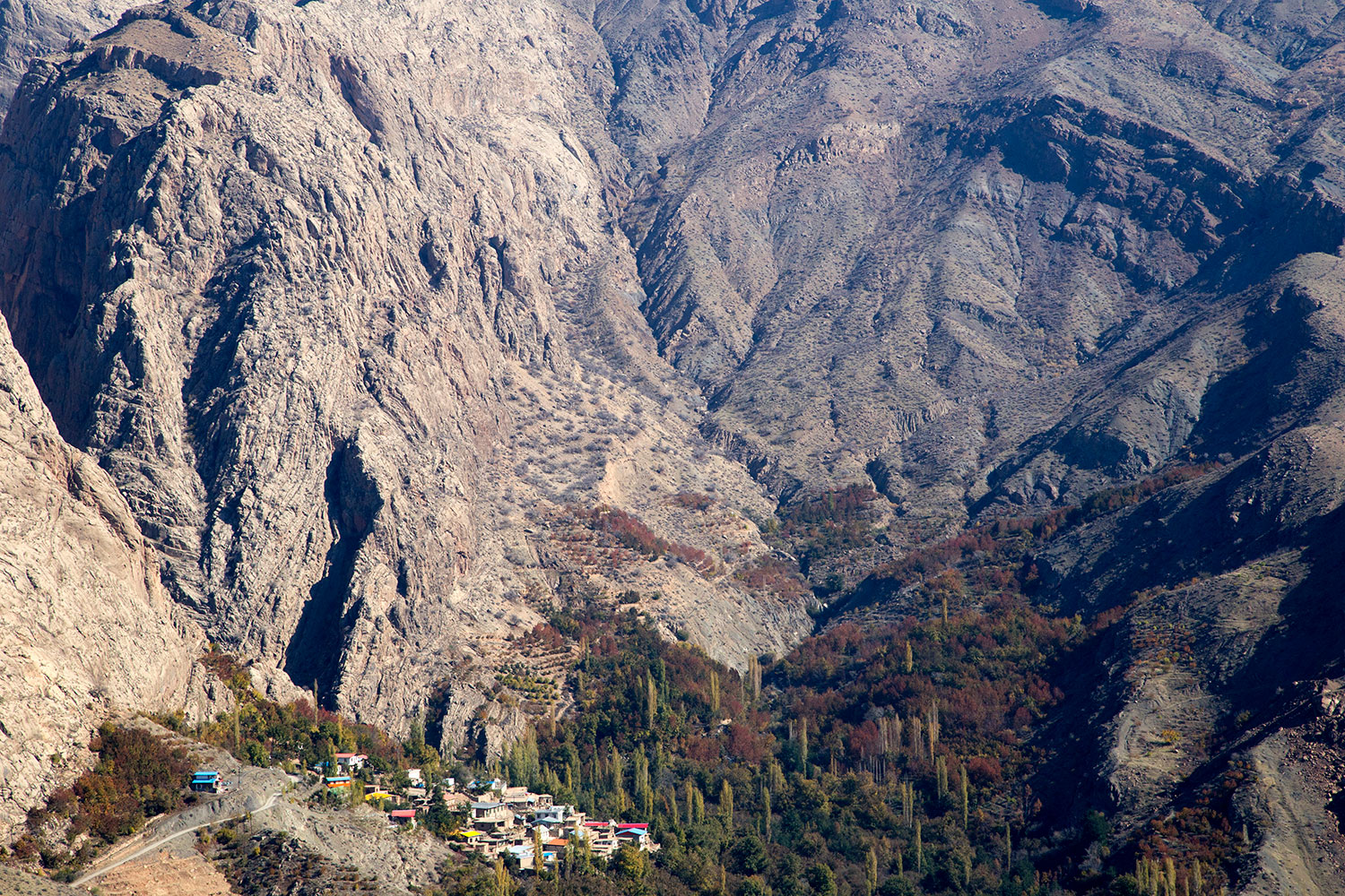 Birkaç akarsuyun birleştiği Şahrud Irmağı’nın geçtiği vadide çeltik tarlaları, meyveli ve meyvesiz ağaçların varlığına rastlıyoruz. Uzak tepelerdeki köylerde hayat durmuş gibi. Buna karşılık vadideki yaşam hareketli ve bereketli. Kadınlı erkekli köylüler çalışıyorlar. Vadinin dibinden dağlara bakmak, insana Kaf Dağı masalını hatırlatıyor. Yeryüzü cennetinde yedi renk ve yedi iklimde yaşadığınız izlenimine kapılıyorsunuz. Vadiye inen her yükselti ve tepede toprak gri, kahverengi, kırmızı, siyah ve sarımsı tonlara bürünmüş. Arazi tedbili kıyafet giymiş gibi şekilden şekle girmiş. Doğal bir şenliğe hazırlanıyorcasına habire örtü değiştiriyor. Gerçekte bu, doğanın topografik bir tasarımı.
